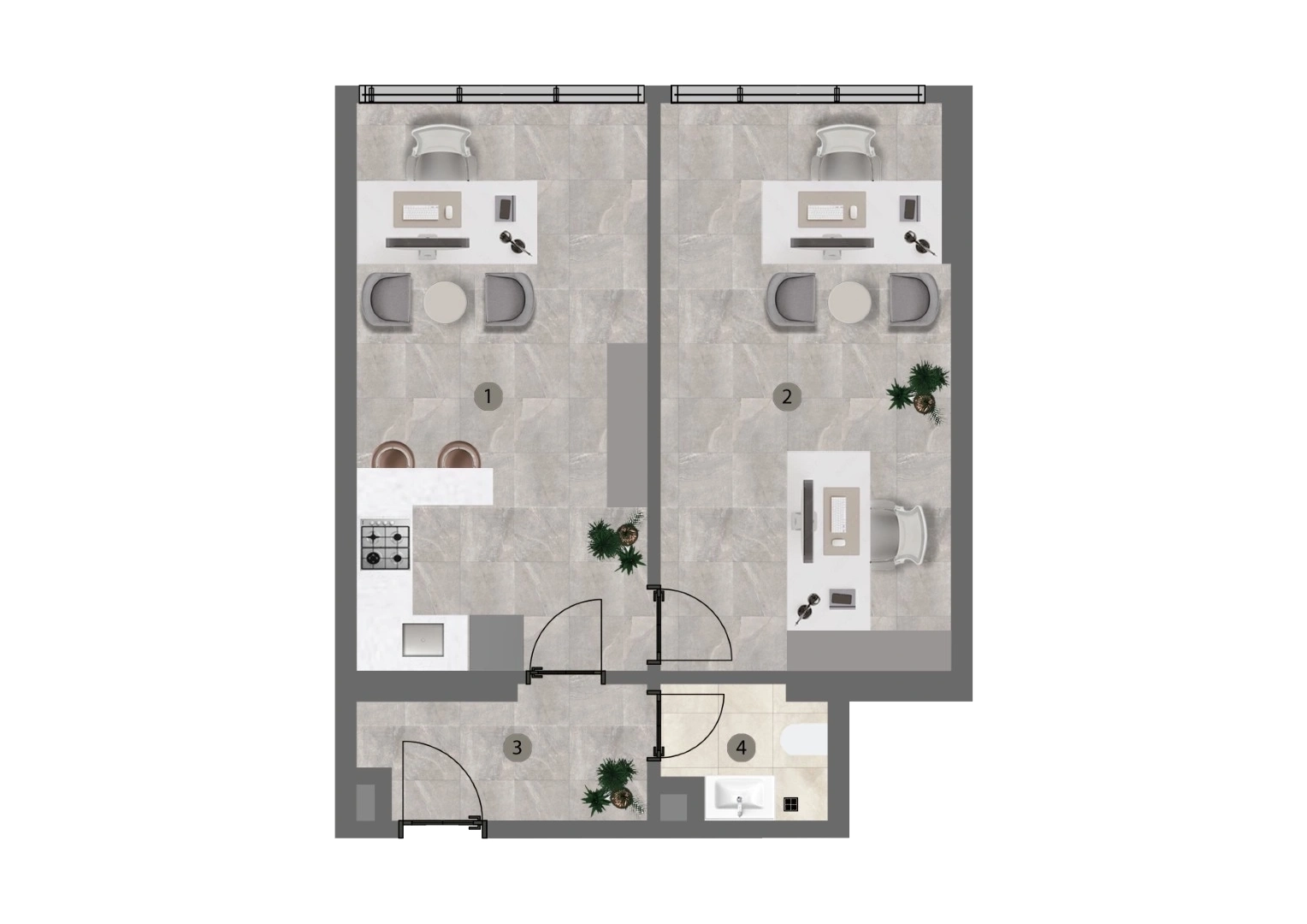 A Blok Tip 3 60m² 1+1 Ofis